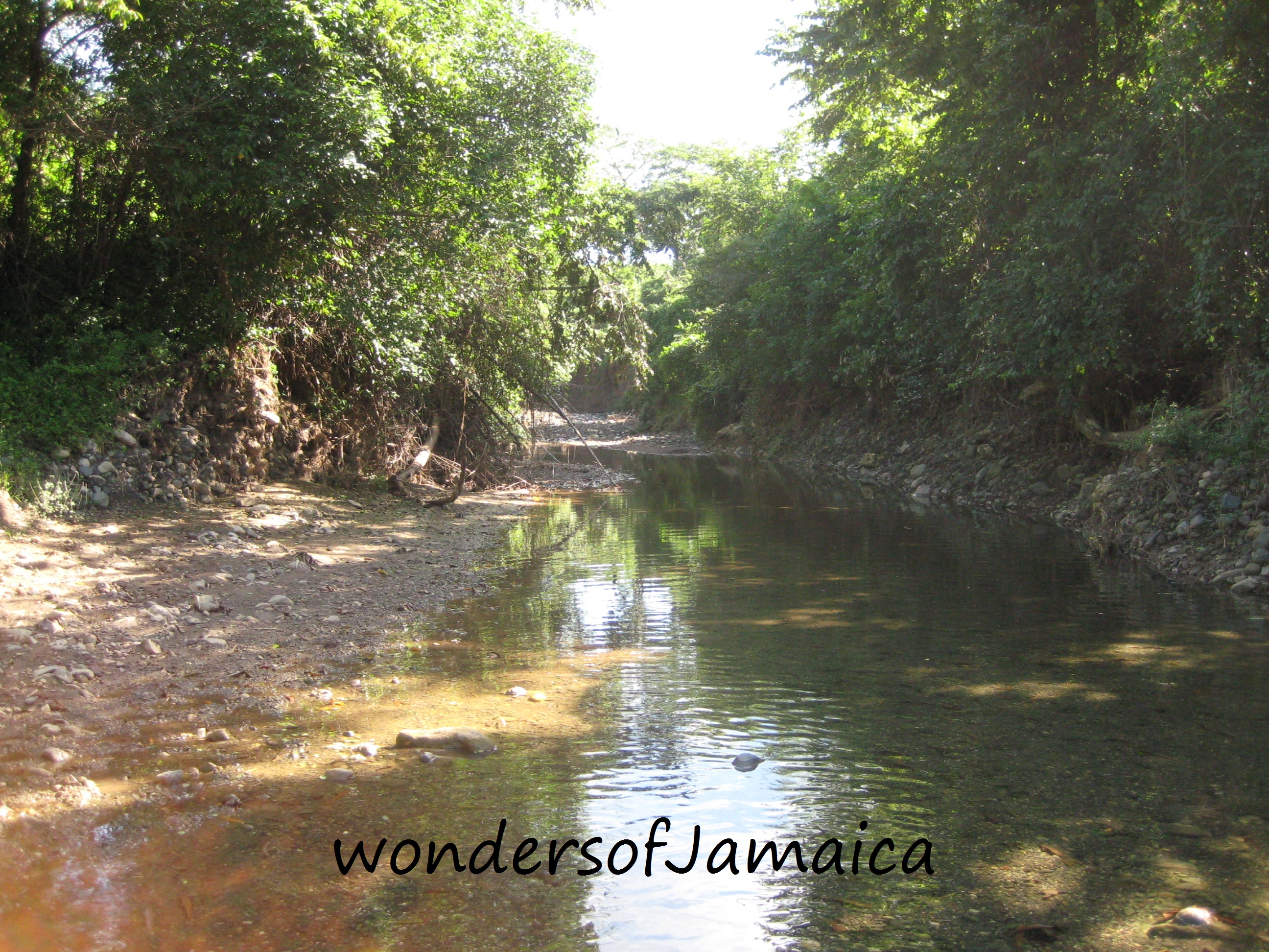 This river is located in Banister, a little village just outside of Old Harbour. There hasn’t been much rain lately so the river is very low at this time, but look how high it can get. Nonetheless, I walked the river path, which made me feel very eerie; the way the trees towered over me, the loose dirt and stones on the river banks…I felt like a wall of water could come rushing towards me at any minute. Simply put, as much as I wanted the experience, I couldn’t wait to get out of there, lol.